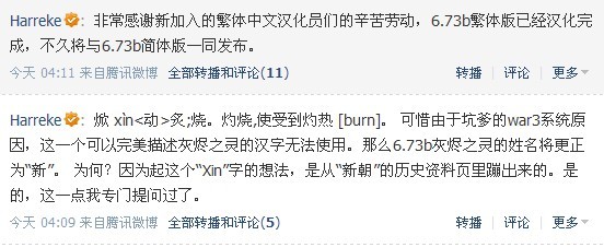 今天凌晨,DOTA官方汉化组组长Harreke表示DOTA6.73b繁体汉化已经完成,简体版正在汉化中,不久会同繁体版一同发布。同时对war3不能正确显示灰烬之灵名字“焮”表示遗憾,并将灰烬之灵更名为新。