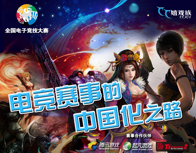在比赛项目的设置上,最火爆的星际2和DotA自然要入选,否则无法吸引目前最知名的选手参赛。这也算是中国比赛必须要多国外游戏做的一些妥协吧。另外,全国电子竞技大赛还特意为全国的大学生设置了“CCJOY大学生电子竞技大赛”,其项目包括腾讯的《穿越火线》和起凡的《群雄逐鹿》。这些项目的设置,是为了培养大学生对中国公司运营和制作的电竞游戏的兴趣,真正为创办中国化的比赛做准备。随着时间的推移,笔者相信加入这个赛事大家庭的国产电竞网游会越来越多,从而使其真正成为代表中国自己的电竞游戏盛会的品牌赛事。